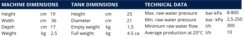 - Automatically supplies 2 autoclaves and includes a tap for manual water withdrawal at the sink